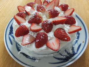 そして今日、リオのリクエスト「イチゴのケーキ」を作りました。