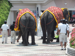 外では動物たちのパレードがあったようで、象が散歩しておりました。