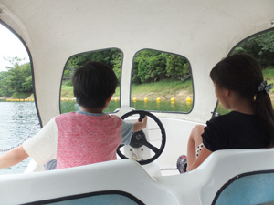「暑いし、漕ぐのしんどいし、ヤダよ~!」と揉めながら、「最後まで子供たちが漕ぐならいいよ。」という条件で乗りました。