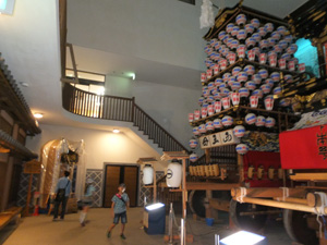 昼間はからくり人形、夜は提灯に変えて1日中お祭りです。