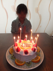 バースデーケーキは、手作りのフルーツケーキで、飾り付けはリオとキラがやりました。