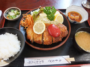 リオキラがやきかつ(並)を、マサさんは店員さんオススメのひれカツ、私はロースカツを注文しました。