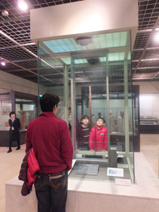 発掘当時はサビで分からなかったのですが、手入れをしようとしたら金で書かれた文字が見つかりました。X線を当てて確認したらすごい発見だということになり、国宝指定されたんだそうです。ガイドさん談。
