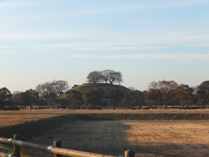 お隣の丸墓山古墳。頂上に桜の木がありますね。春は綺麗でしょうね。