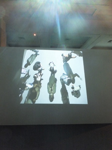 本来黒いはずの影に、前から撮影した映像を投影しているようです。(ややこしい)
