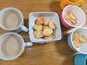 玄関も飾りつけてますが、写真を撮り忘れました・・・。
