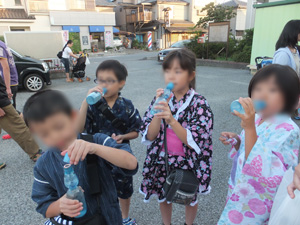 ラムネを飲む子供たち。