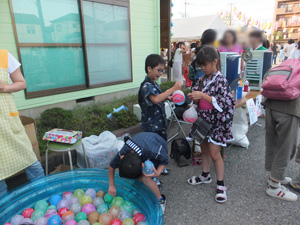 ヨーヨー釣りをする子供たち。