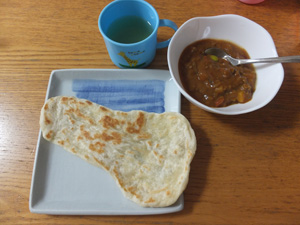 今日のお昼はキーマカレーとナン。