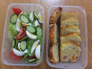 以前、親子クッキングで作ったケークサレとサラダを持参して行きました。