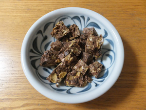 マシュマロとチョコをレンジでチンして、シリアルを混ぜて固めたもの。