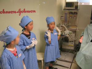 まずは病院で、お医者さん体験です。