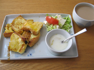 フレンチトーストとフルーツヨーグルト。