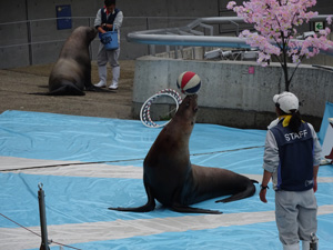 このセイウチさん、最初はお姉さんの言うことを聞かずに帰ろうとしてました。