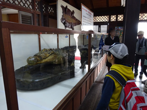 これは最大の個体だったワニのはく製です。