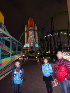 そうそう、ロケットの前のジェットコースターと観覧車だけは夜も動いていました。